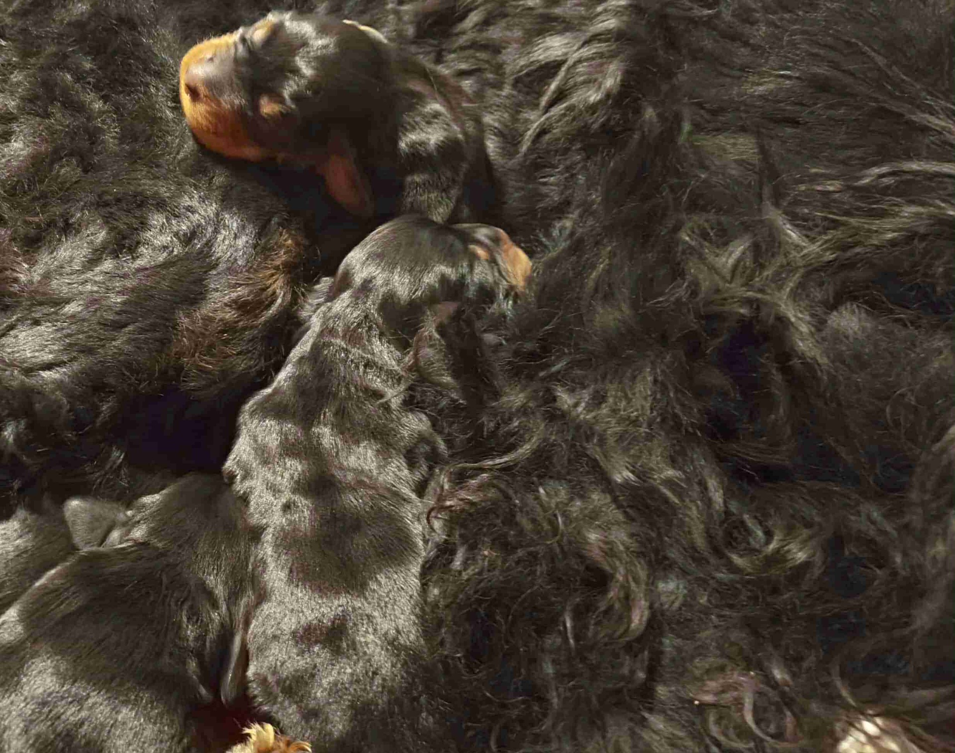 – BJ – pochází z výjimečné australsko-americké linie. Z éry, kdy Gordon Setter nesl typičnost plemene v plné kráse – v exteriéru i v pohybu.